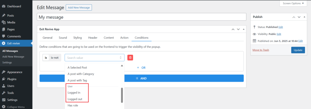 Exit Revive lets you create targeted popups based on user behavior and page context. Sometimes, you may want your message to show only to logged-in users—like a special offer for your members—or just to visitors who aren’t logged in yet.