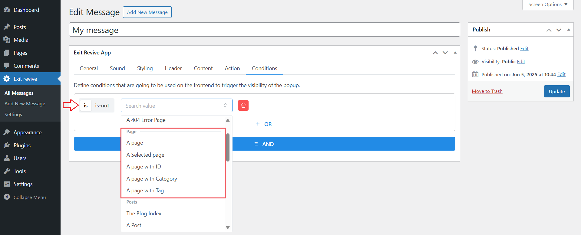 Once you’ve set the condition, click Update or Publish on the right side.
