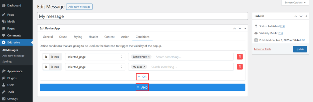 This guide will show you how to configure Exit Revive to display a message only when a visitor is viewing a specific page on your WordPress site. This ensures your messages are shown at the right place, to the right audience, without disrupting the rest of the site.
